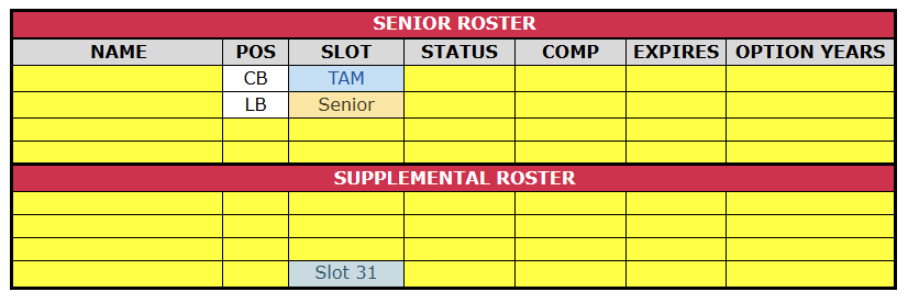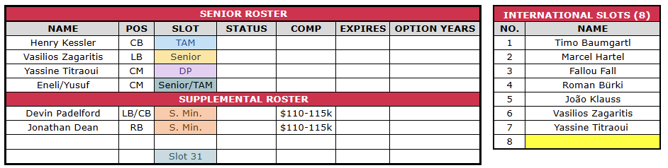 Under that assumption — with Player X signed on a TAM deal — CITY would be left with three senior roster slots and three to four supplemental slots to work with as we move forward.