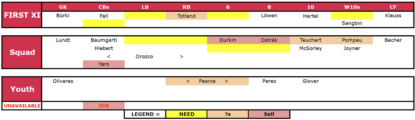 This is the part that was largely put on ice while we waited on clarity at the top — first a Sporting Director, then a Head Coach.